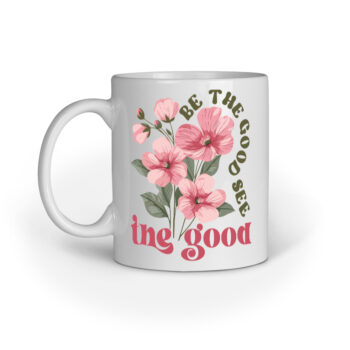 A charming cat-themed mug with three playful cats and hearts, great for tea and coffee lovers.
